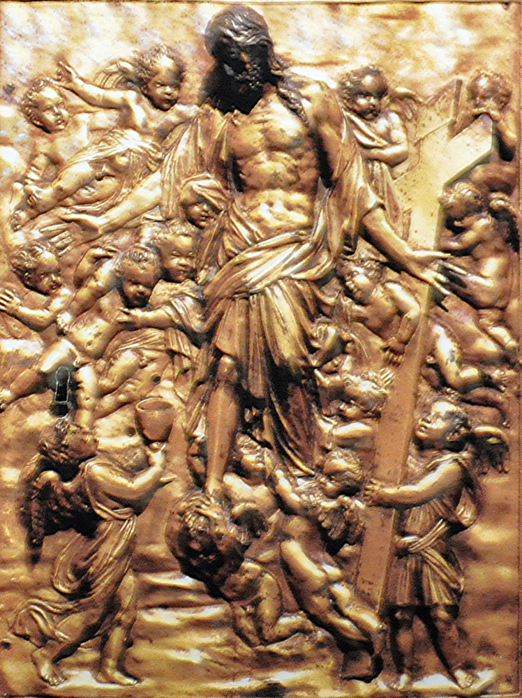 I found the plaque in the upper gallery of the cathedral. Unfortunately there was no identifying label, and it is hard to give the work a sure date.