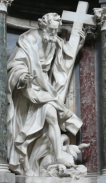 St. Philip's attributes are a cross and/or a dragon, as in the first photo at right.
