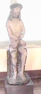 This sculpture type is known in Spanish as Cristo de la Humildad y Paciencia ("Christ of Humility and Patience") or El Dios de la Peña ("The God of Suffering"). Following the beatings suffered at the hands of the soldiers, Jesus sits weary on a stone wearing his crown of thorns. Such images were traditionally carried through the streets in Holy Week processions.