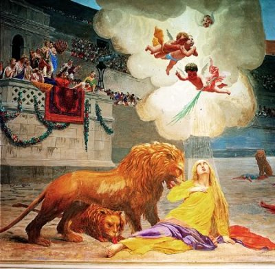 St. Euphemia was martyred at Chalcedon during the persecutions of Diocletian at the beginning of the 4th century. After Christianity was legalized in 313, the people of Chalcedon built a grand basilica for the sarcophagus containing her remains. In about 380-90 St. Asterius of Amasea visited the basilica and was deeply moved by a painting of Euphemia's martyrdom that may have been based on eyewitness accounts. He then wrote an ekphrasis, a literary description of the painting, which is the earliest account of the martyrdom.1