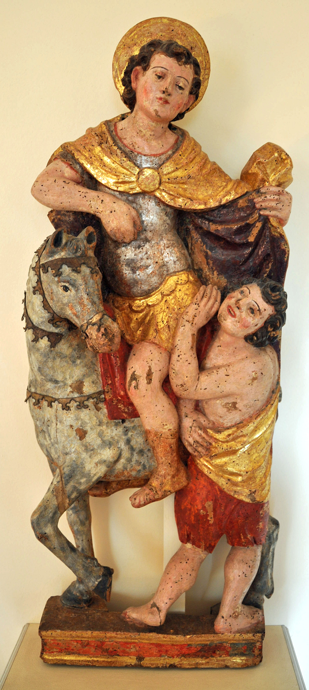 ![]() St. Martin is most often portrayed with the beggar to whom he gave half his cloak. (See the description page for this image and the page explaining the iconography of images of this saint.)