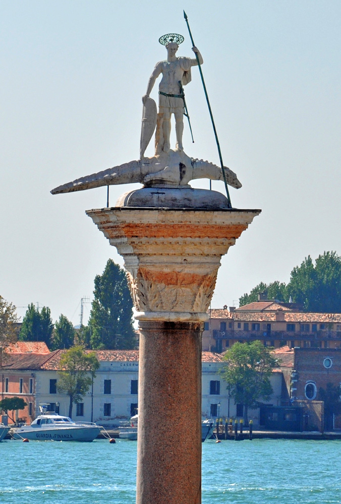 ![]() St. Theodore is one of the patron saints of Venice, where this statue stands atop one of the pillars in the Piazzetta San Marco. It recalls an ancient legend in which he slew a man-eating dragon (Acta Sanctorum, November vol. 4, 16-17) See the description page for this image and the page explaining the iconography of images of this saint.