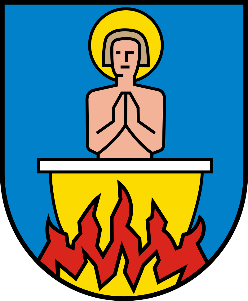![]() ![]() St. Vitus's attribute is a dog, but often he is instead pictured praying from within a boiling cauldron. (For an explanation of this iconography, see the main page for this saint.)