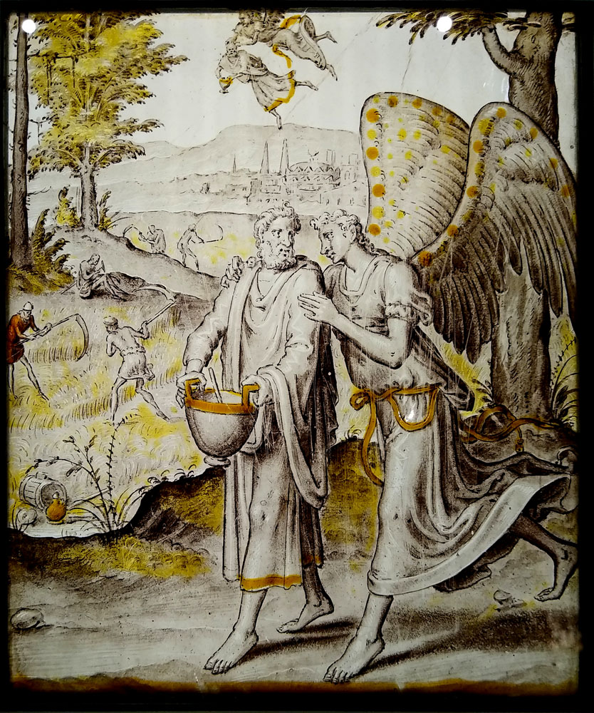 ![]() Detail from a 4th-century sarcophagus. Habakkuk brings a bowl of bread and stew to Daniel in the lions' den. (See the description page.) ![]() Sixteenth-century painted glass of the angel telling Habakkuk to take the pot of stew to Daniel. (See the description page.) MORE IMAGES