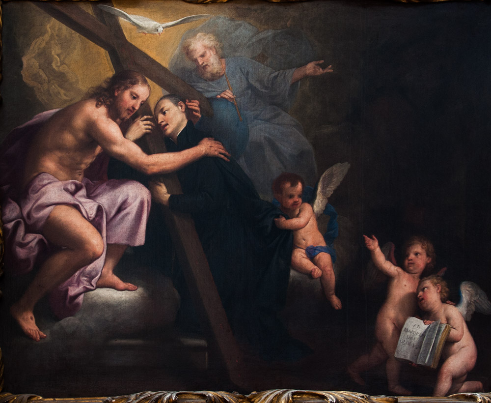 Lazzarini, The Savior Embraces St. Ignatius Loyola. For details, see the description page. OTHER IMAGES (Click for full image and description): ![]() A contemporary portrait (See the description page.) ![]() Rubens's painting of Ignatius Loyola in a chasuble. (See the description page.) ![]() The Trinity receives Ignatius Loyola into Heaven (See the description page.) DATES