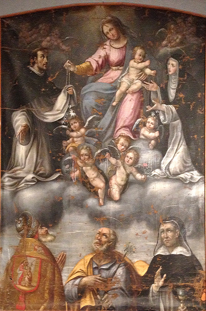 The two achievements for which Pius V is most famous are his vigorous reform of the Church along the lines laid out by the Council of Trent and the formation with Venice and Spain of the Holy League, which defeated the Turks at the Battle of Lepanto on October 7, 1571.1 He is also remembered for promoting the Rosary prayer, for example in the second picture at right. After the victory at Lepanto he ordered that October 7 be commemorated as the Feast of the Holy Rosary.2 Prepared in 2015 by Richard Stracke, Emeritus Professor of English, Augusta University |