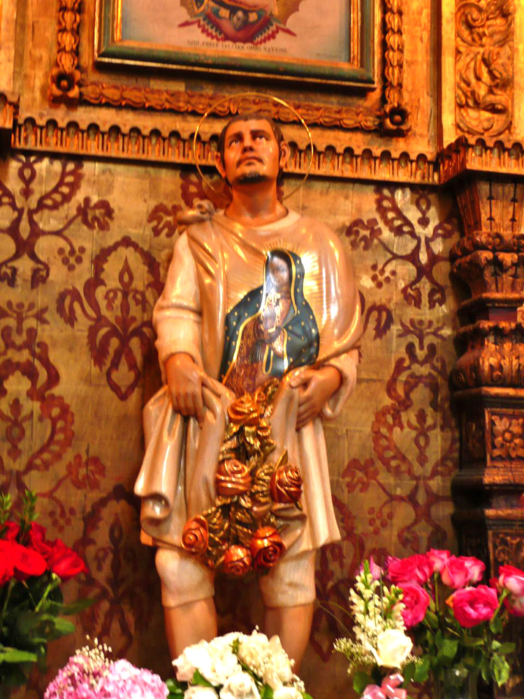 In December of 1521 Juan Diego informed the new Bishop of Mexico City that the Virgin Mary had appeared to him on Tepeyac Hill, near the city, and asked that a shrine be built there. According to the Nican Mopohua, the first account of these events, the bishop's incredulity was overcome at Juan Diego's next visit, when Juan opened his tilma or mantle. Not only was it filled with roses, surprising enough in winter, but on it was an image of the Virgin Mary as the Immaculate Conception.2 This is what is pictured in the image at left.