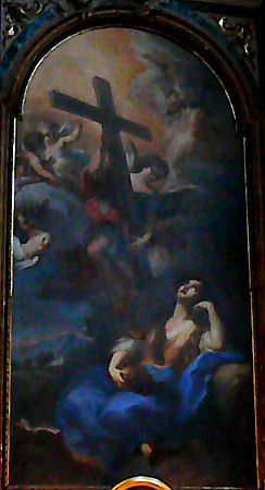 Usually Mary Magdalene contemplates a small devotional crucifix, but Triga gives her a life-size cross posed to pierce her heart.