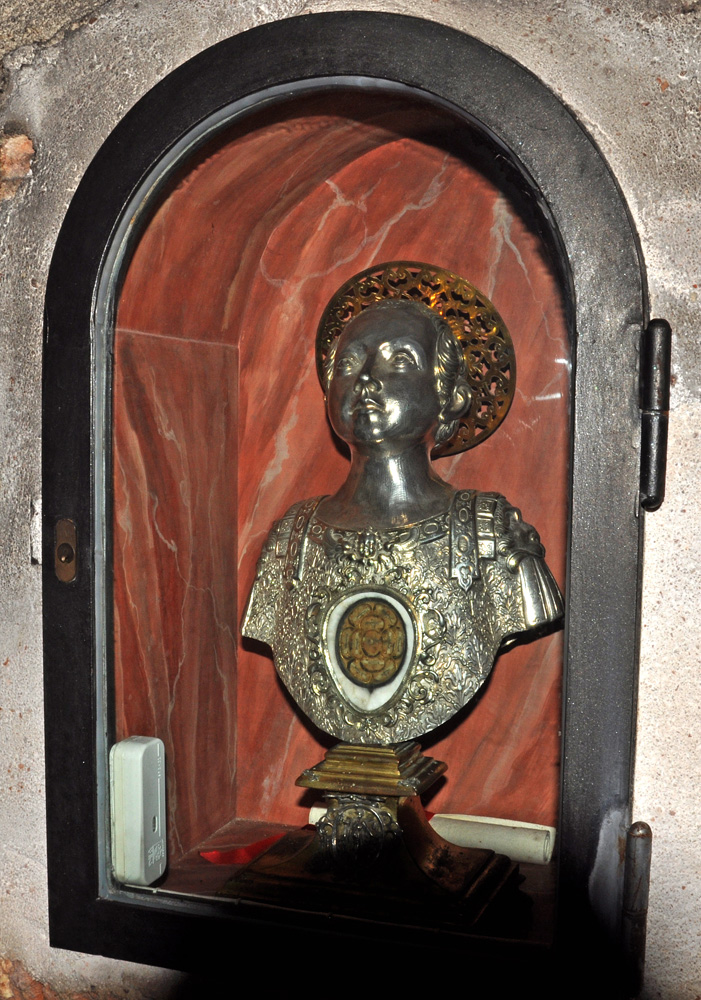 This medallion is set on the base of a reliquary in the crypt of the church: