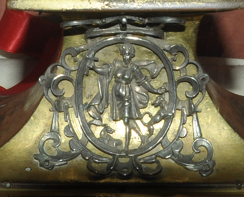 St. Vitus was a Sicilian boy of seven who embraced Christianity during the reign of Diocletian and performed numerous miracles and conversions. This drew the attention of the governor Valerian, who persecuted Vitus even though the boy had cured his withered arm. So an angel guided him to Lucania in Italy, along with his tutor Modestus and his nurse Crescentia. The Emperor Diocletian then summoned him to Rome to help his son, who was possessed by a devil. At Vitus's prayer the devil was driven out, but that did not stop Diocletian from ordering Vitus to be tortured into worshiping the gods. The boy and his companions were imprisoned, squeezed under heavy iron weights, exposed to lions, and put into a vat of molten lead. Finally they died after being stretched on a rack1,2.
