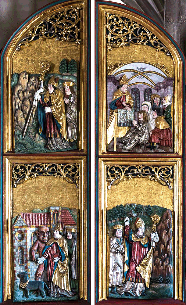 ![]() St. Wolfgang's portrait in St. Stephen's Cathedral, Passau (See the description page.) ![]() These altarpiece wings picture a sermon of St. Wolfgang's and three of his miracles. (See the description page for further discussion.) MORE IMAGES